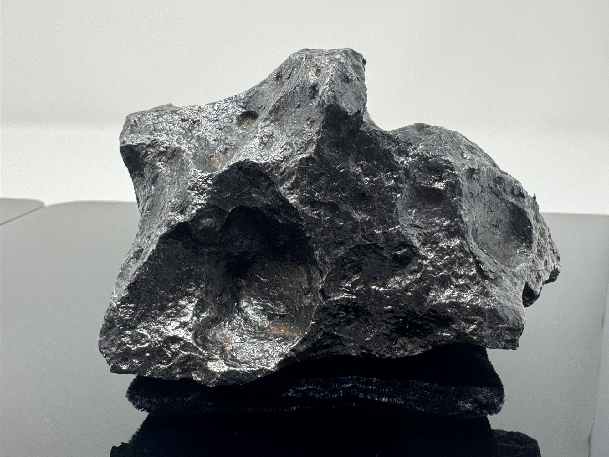 Note: small pieces of this campo meteorite will flake off from time to time, similar to shale. This is NOT a concern to be worried about, and is simply the nature of owning a full, solid nickel/iron meteorite. We choose to lightly clean these meteorites to showcase them in their natural form, rather than altering them.