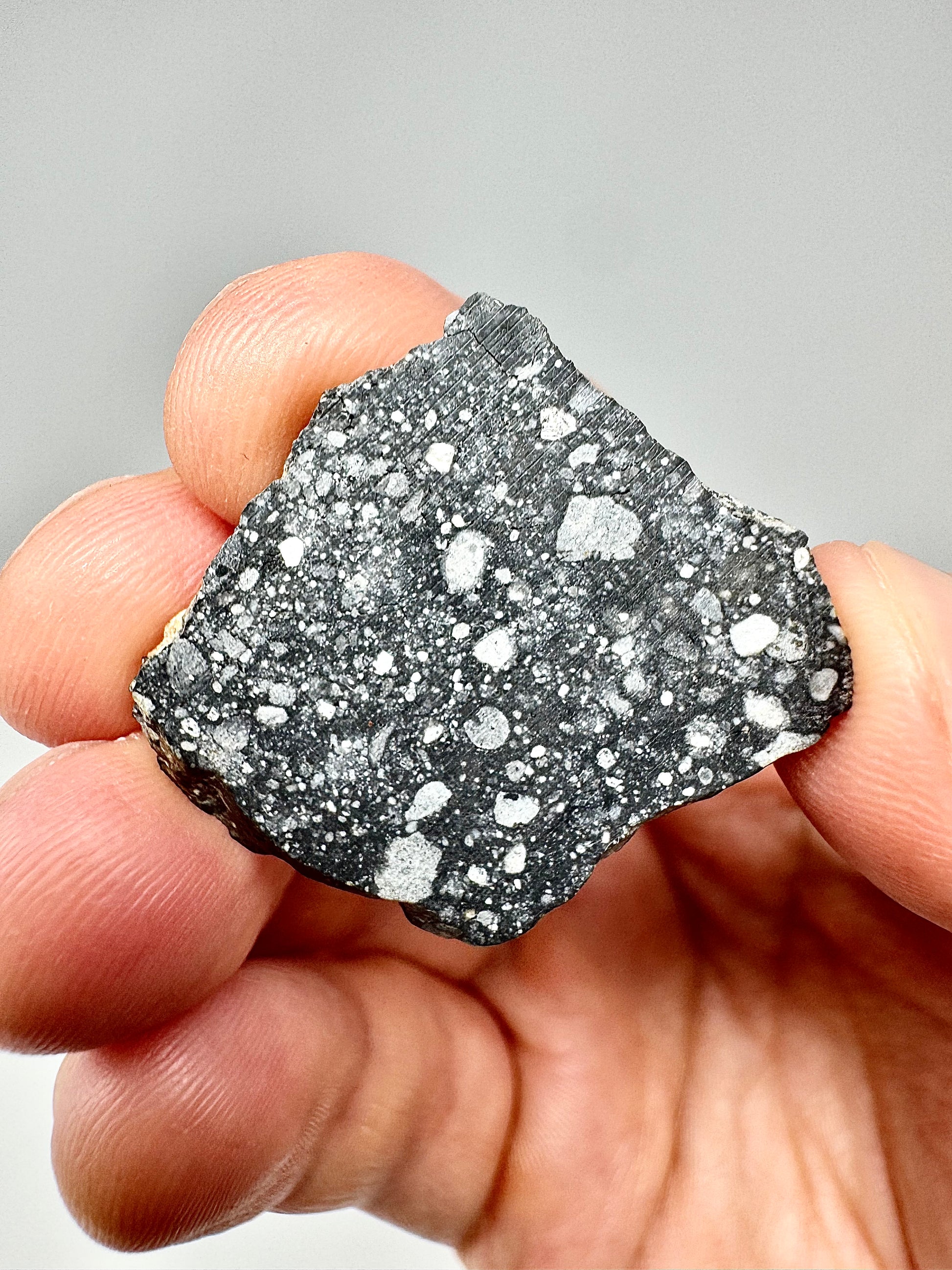 Welcome one of the newest meteorites to enter The Interstellar Collection: a breathtaking lunar meteorite specimen that embodies the very essence of our moon. This stone belongs to an esteemed category of meteorites that have ejected from the moon's surface due to cosmic collisions, voyaging through space to grace our planet with its extraordinary presence.