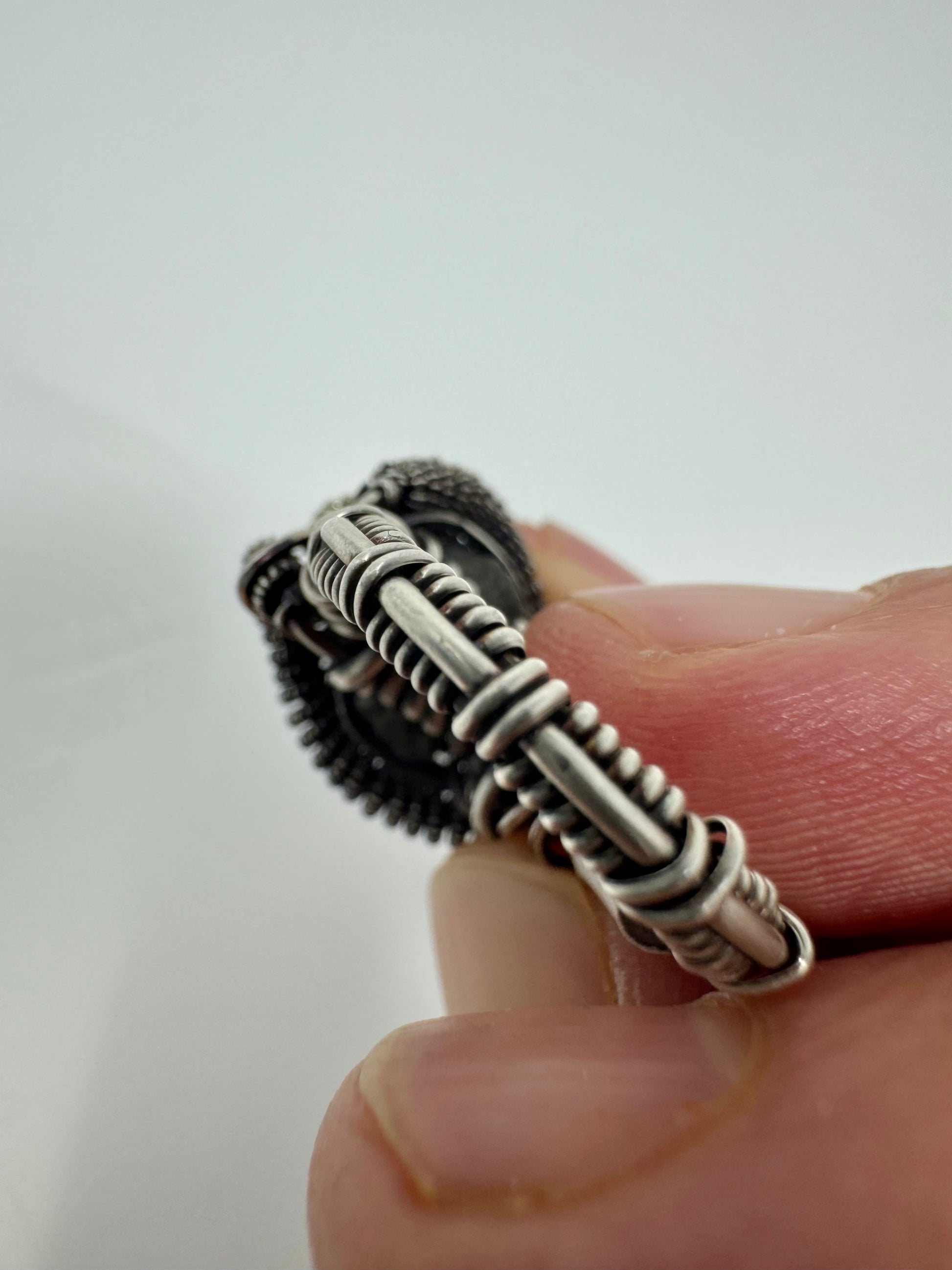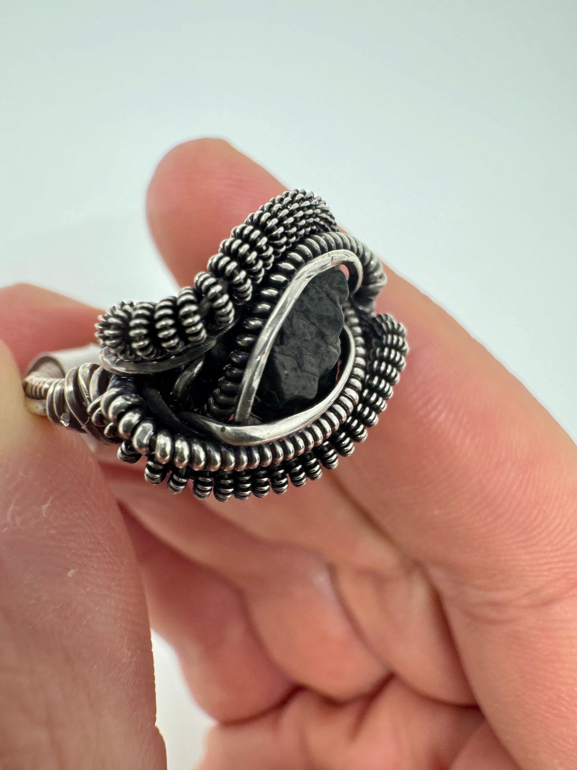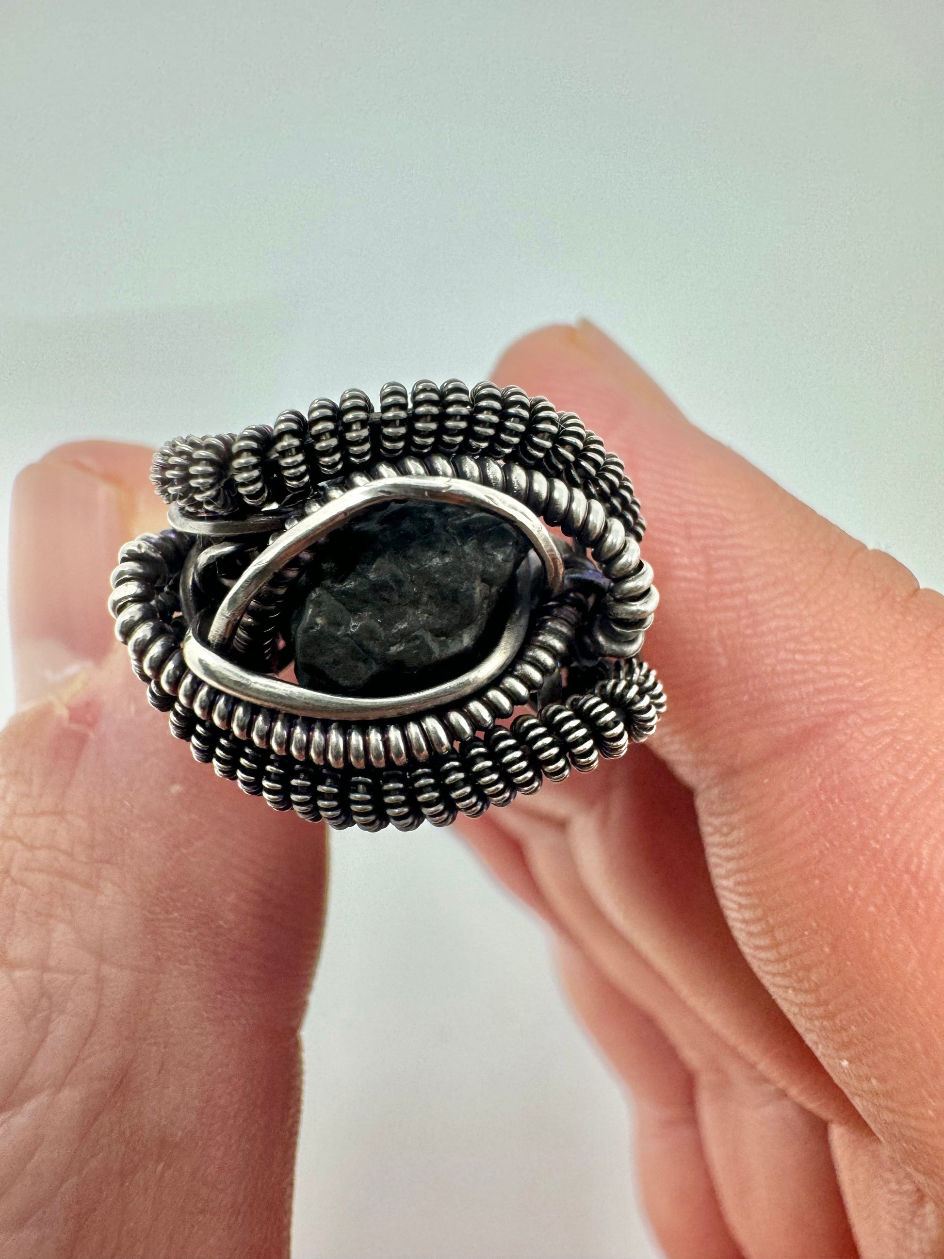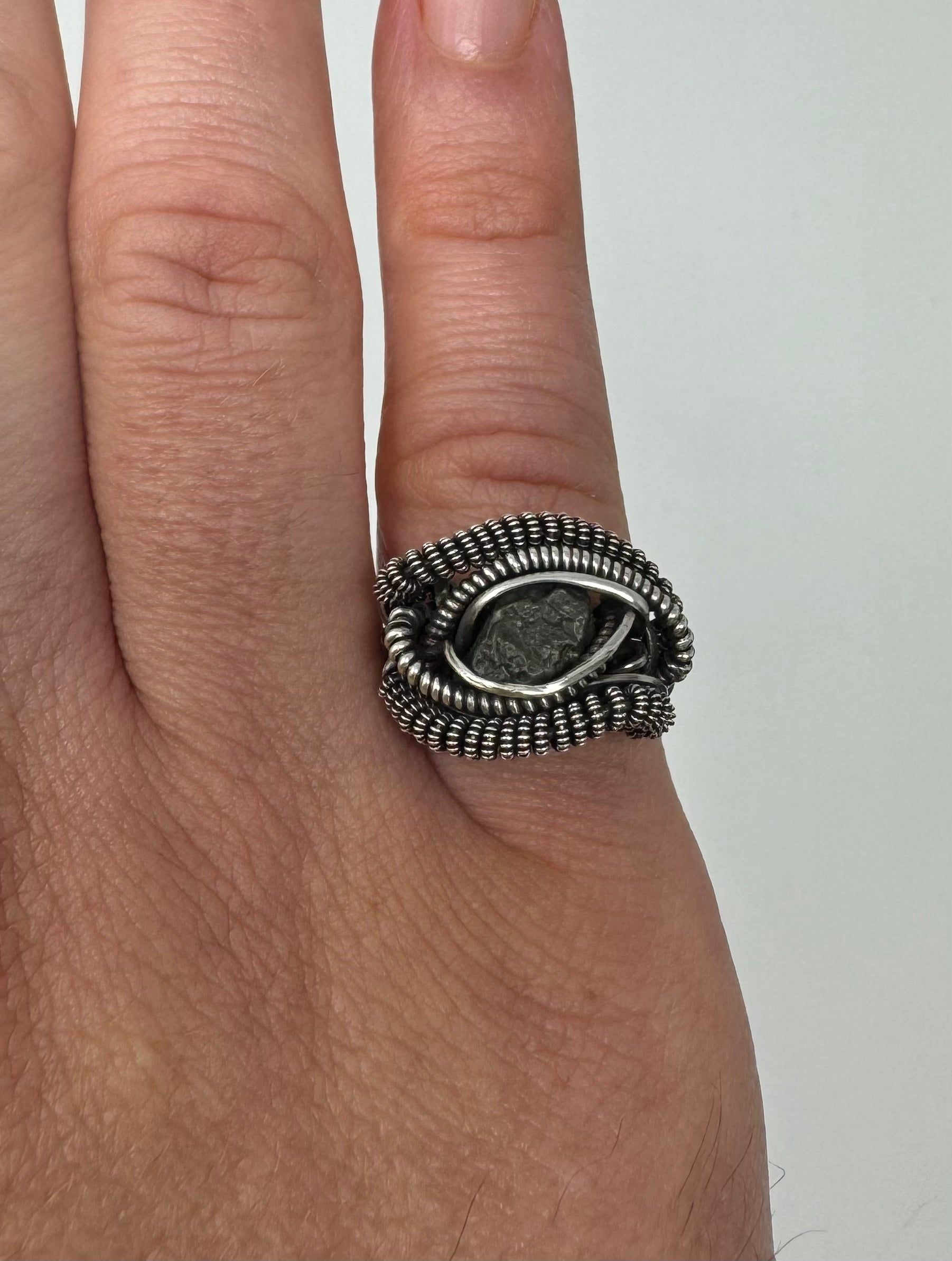 Handmade Ring - Genuine Lunar Meteorite + Silver - Size 6 - One of a Kind