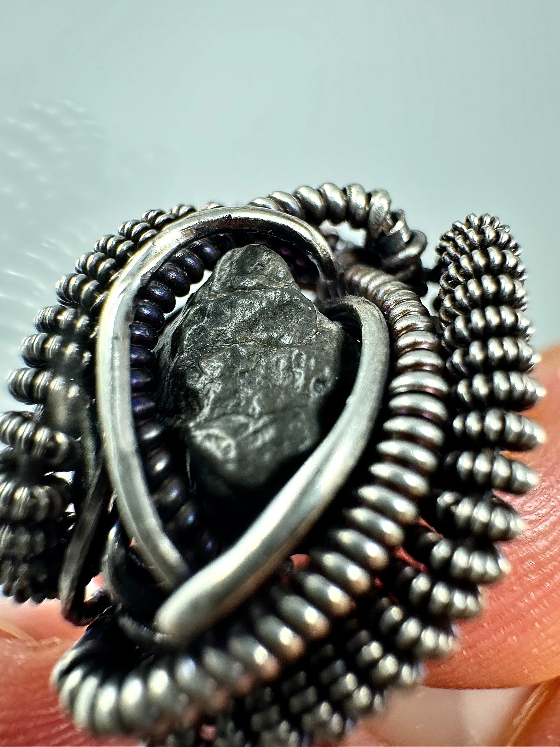 Experience the wonders of the universe in the most intimate way possible with this stunning sterling silver ring with a genuine lunar meteorite embedded in the center.