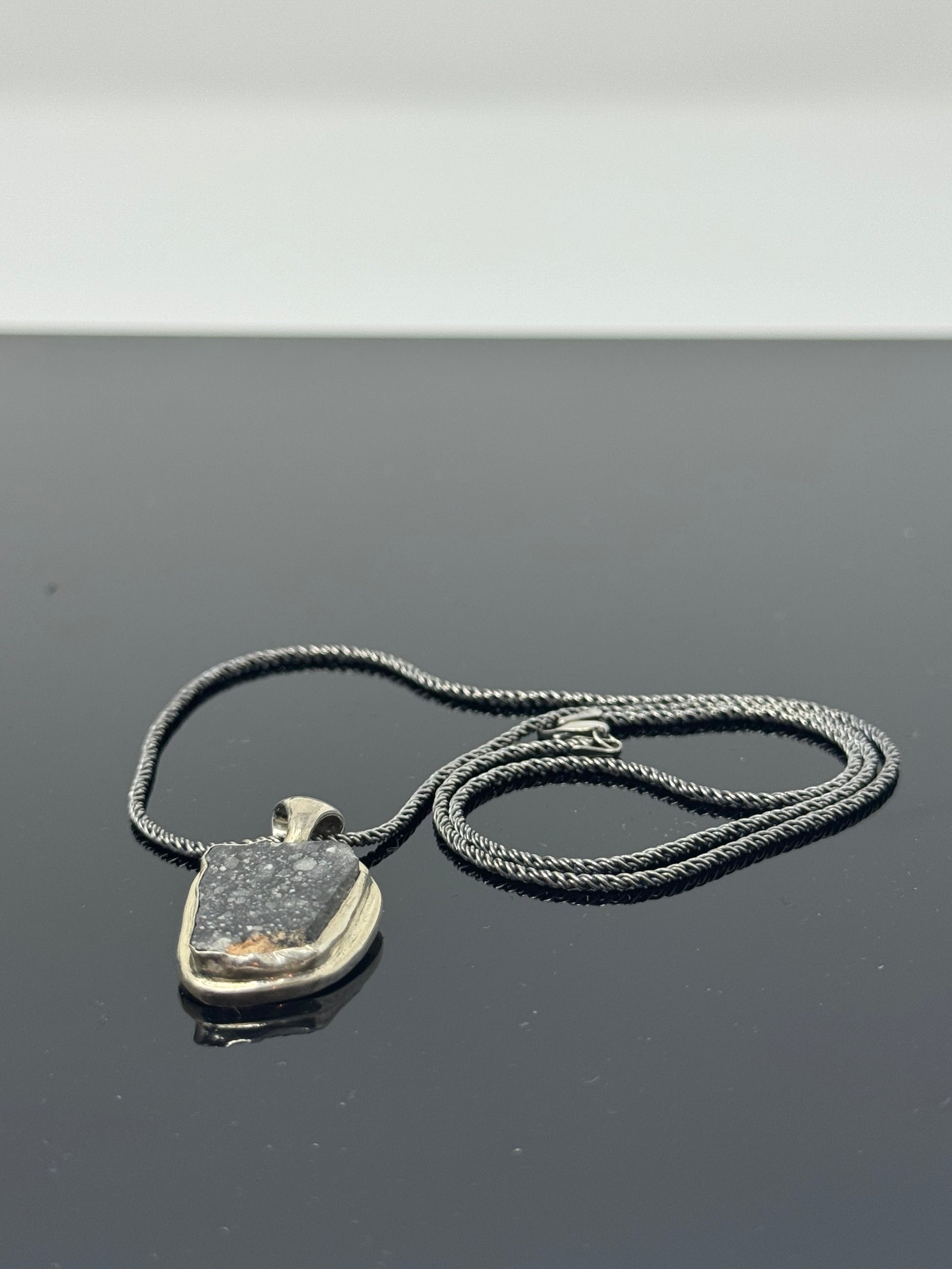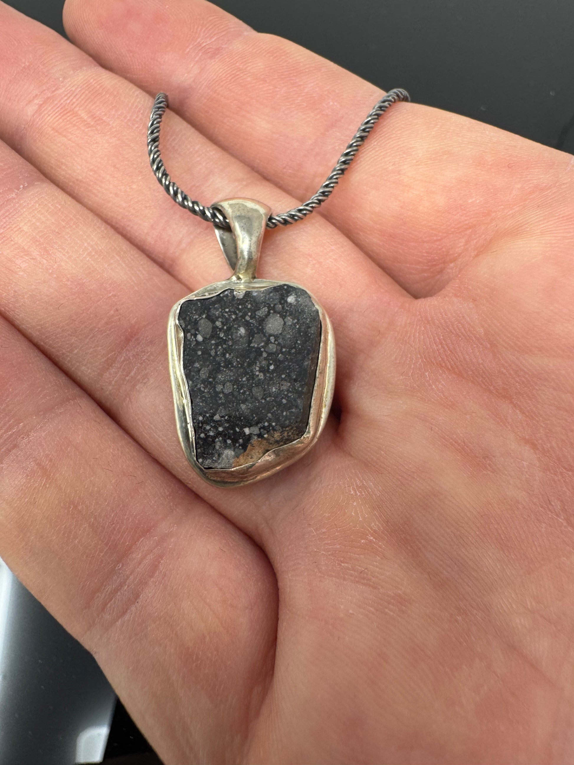 The Surface of the Moon Collection: Genuine NWA 17679 Lunar Meteorite Silver Necklace - Handmade - One of a Kind