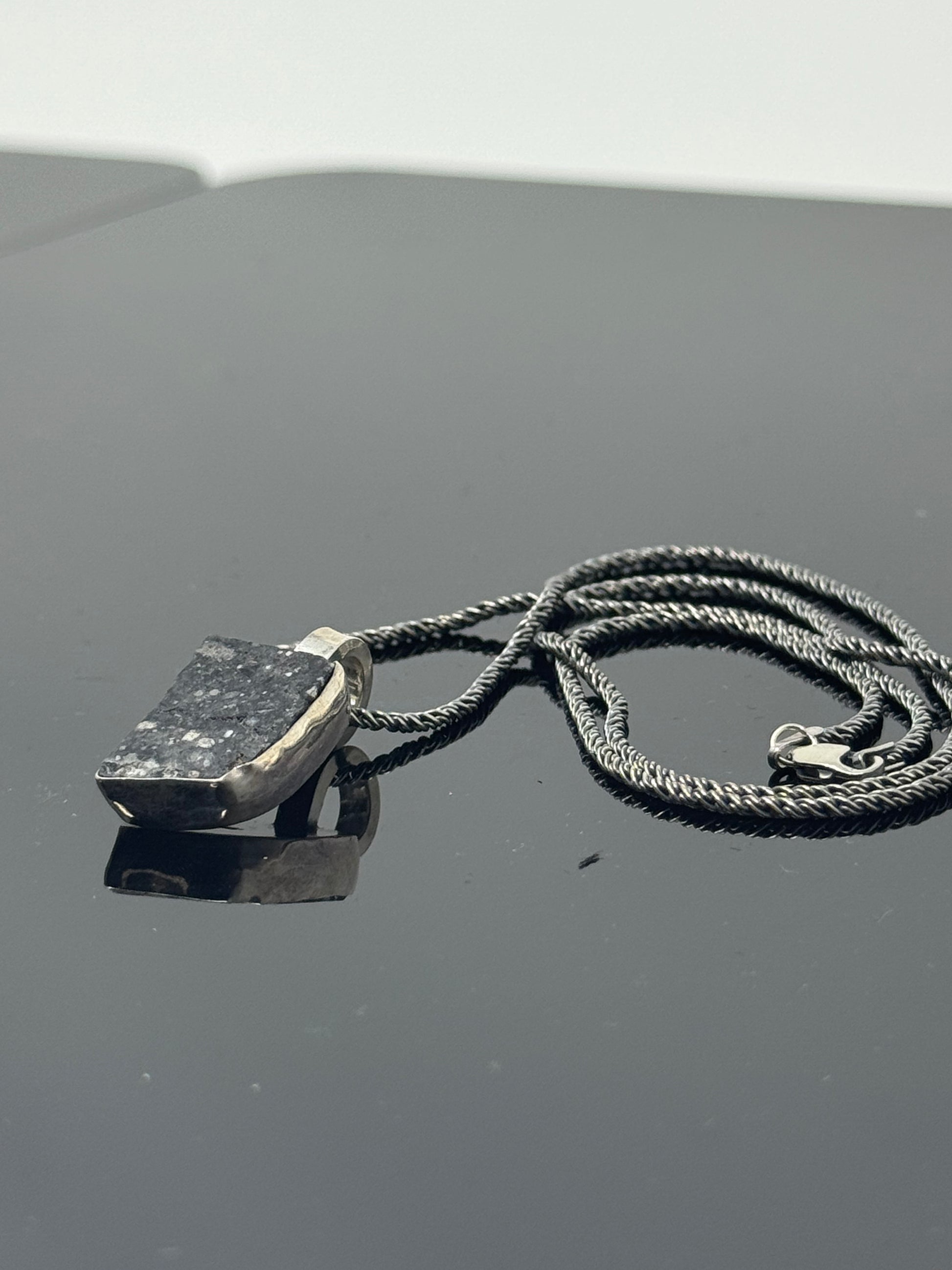 The Surface of the Moon Collection: Genuine NWA 17679 Lunar Meteorite Silver Necklace - Handmade - One of a Kind