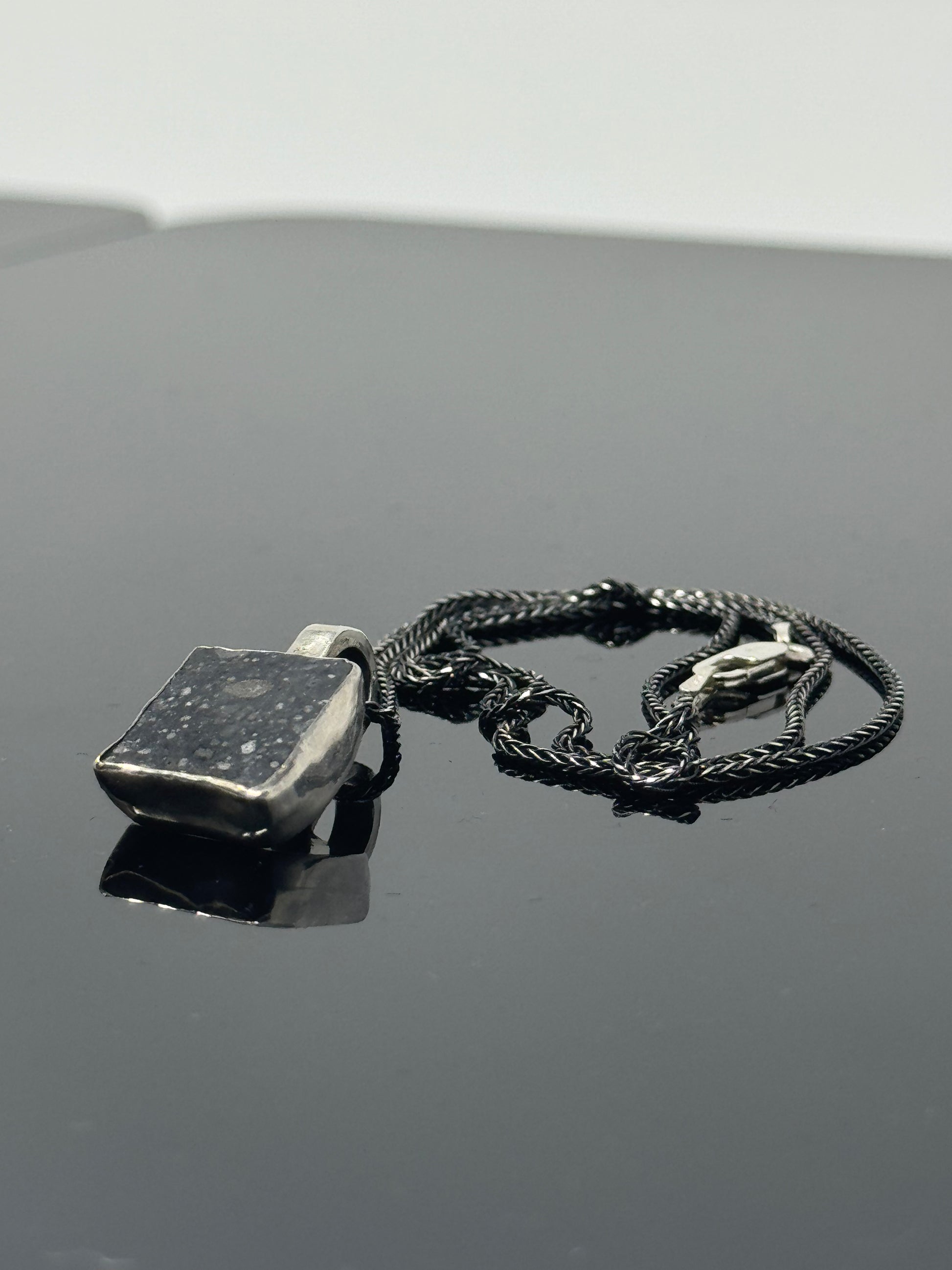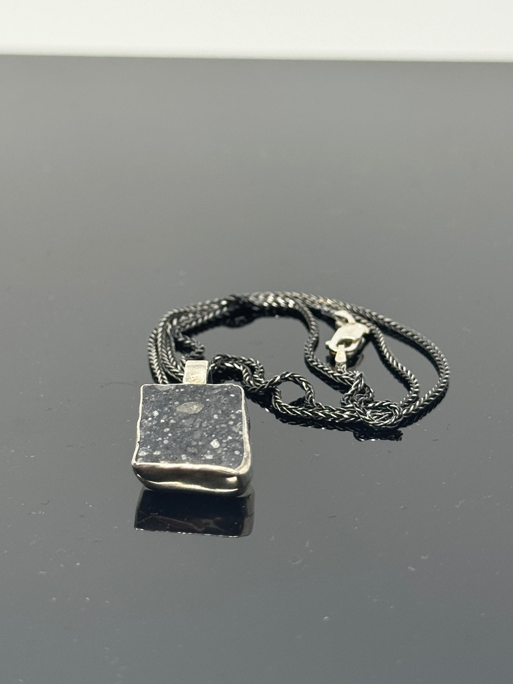 The Surface of the Moon Collection: Genuine NWA 17679 Lunar Meteorite Silver Necklace - Handmade - One of a Kind