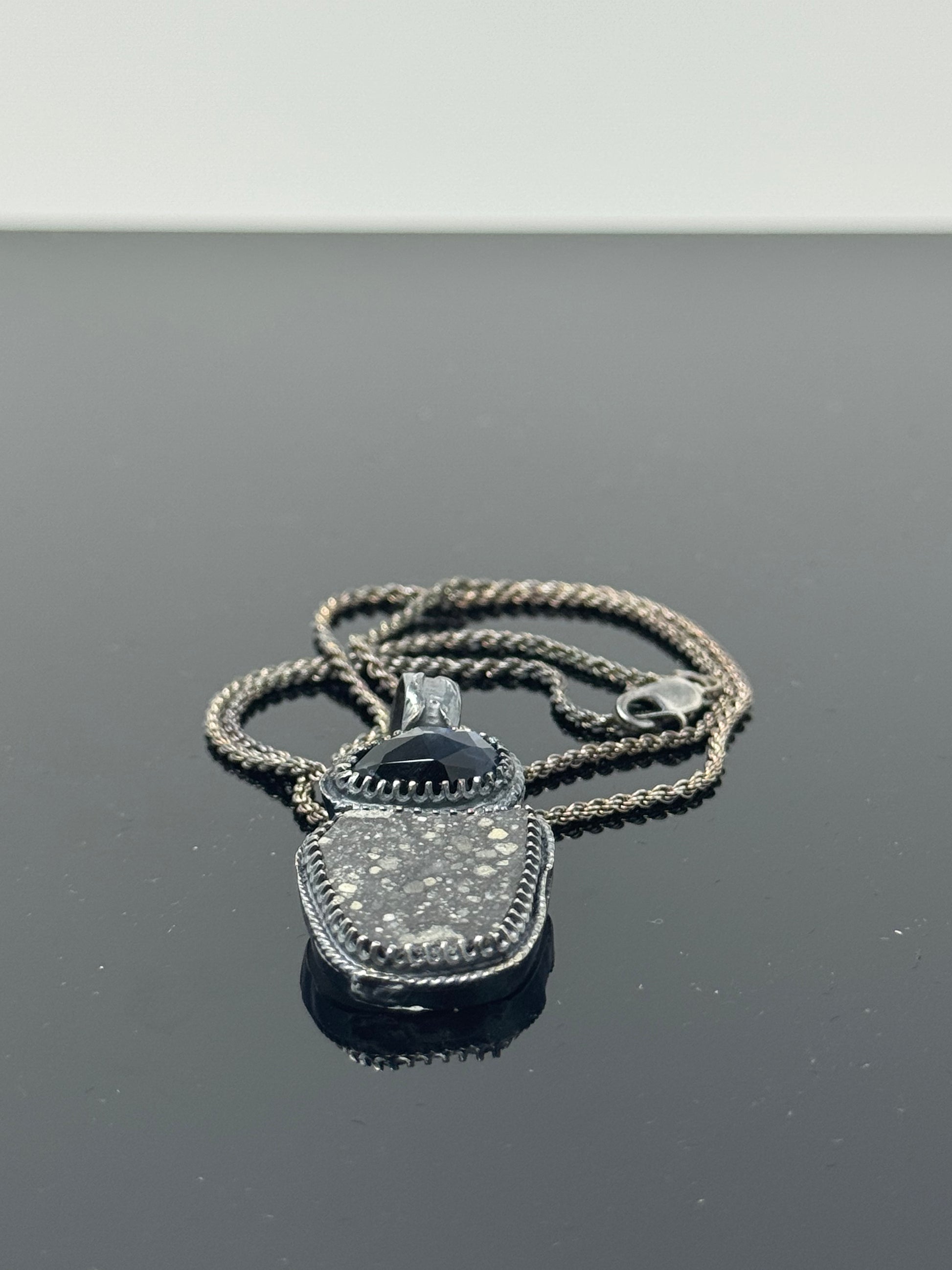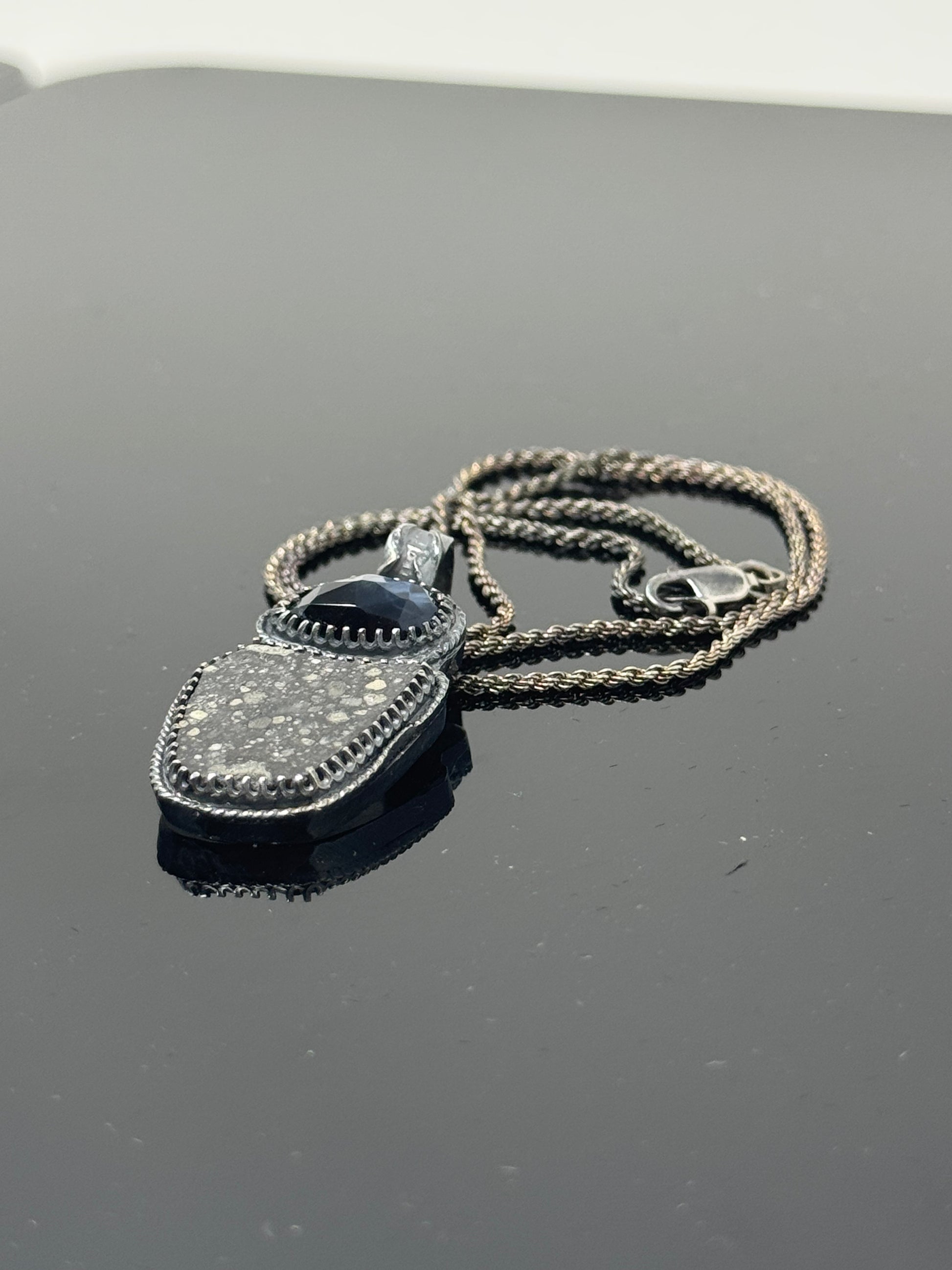 The Surface of the Moon Collection: Genuine NWA 17679 Lunar Meteorite Silver Necklace w/ Pietersite - Handmade - One of a Kind