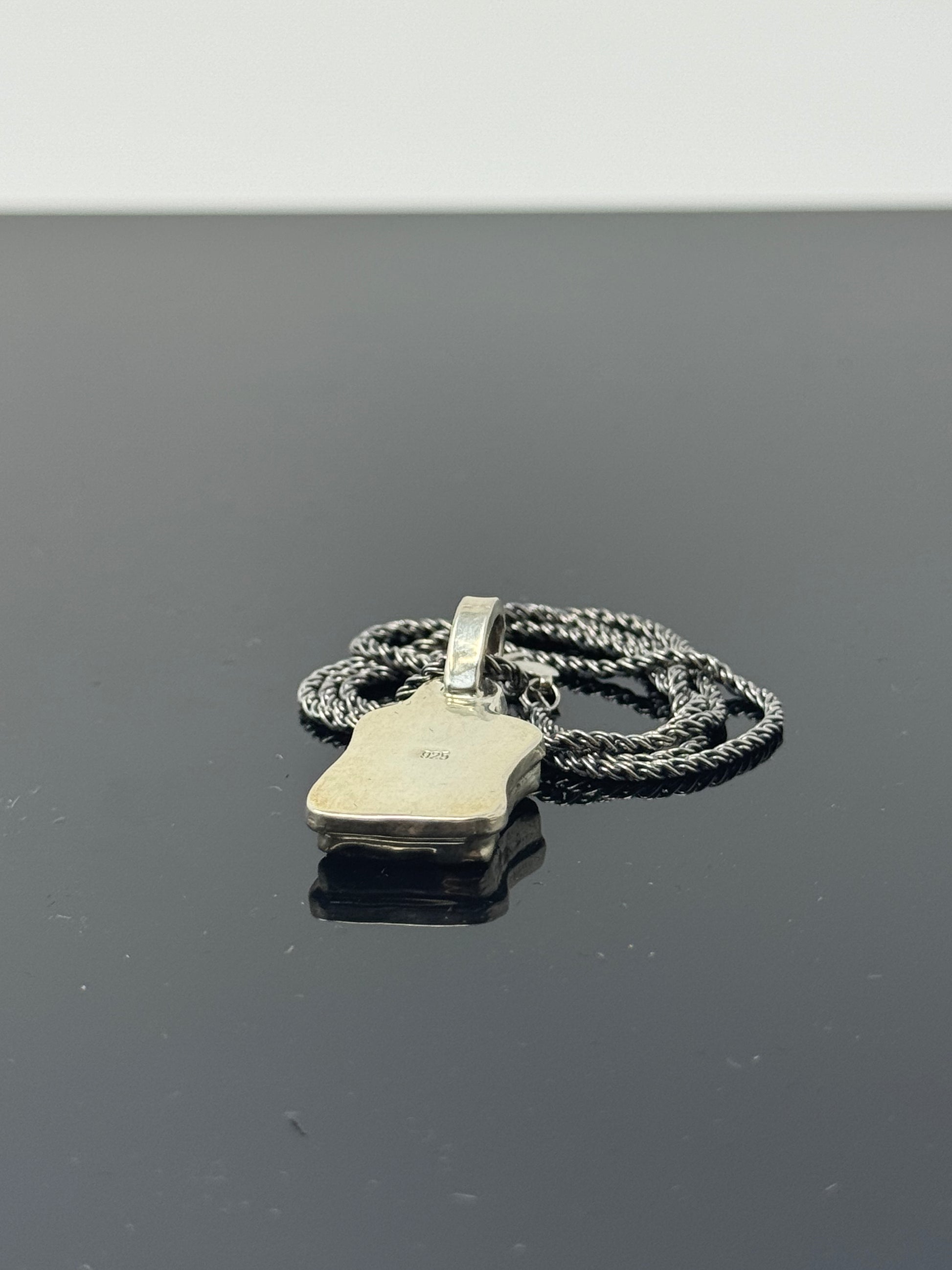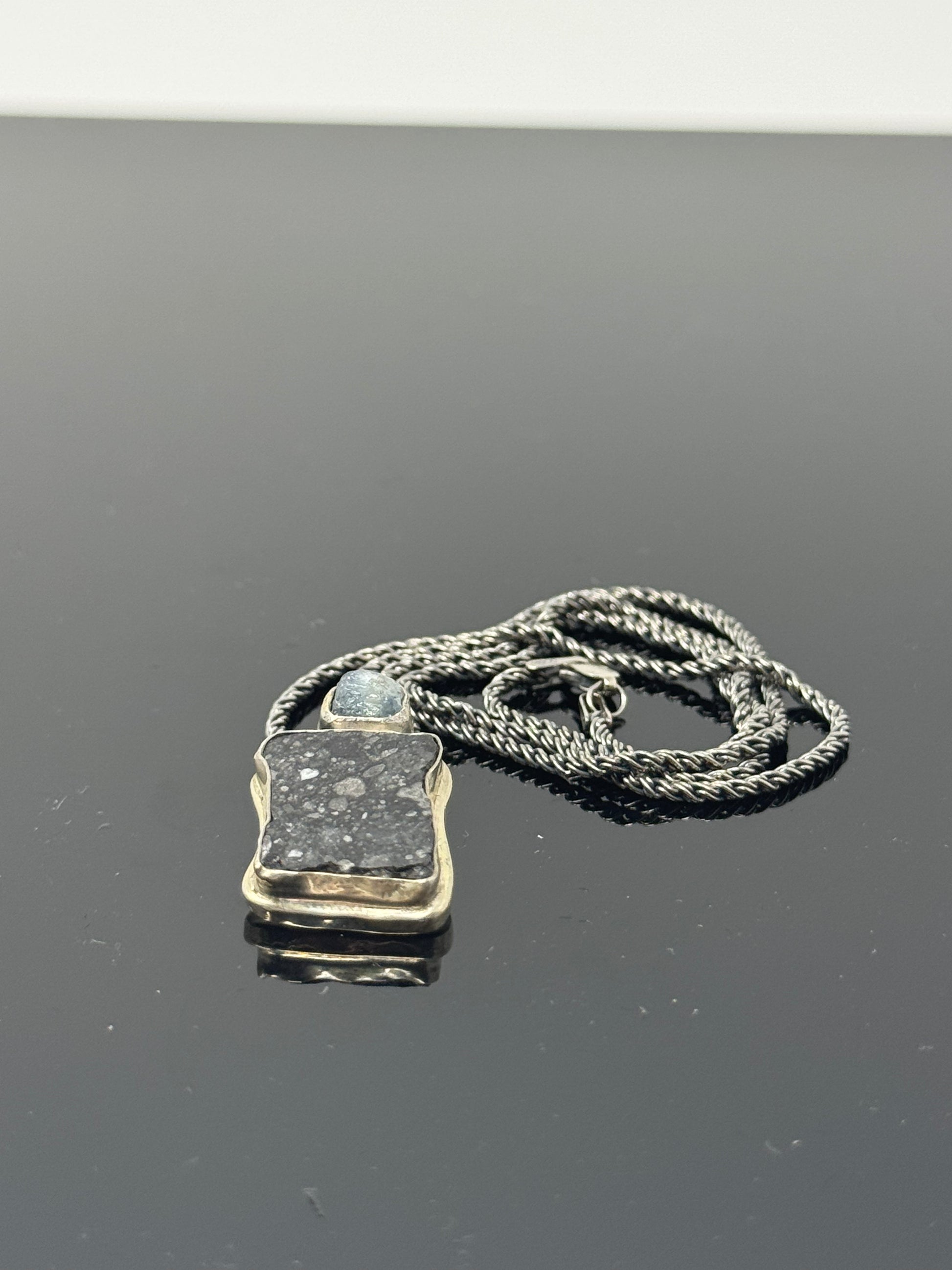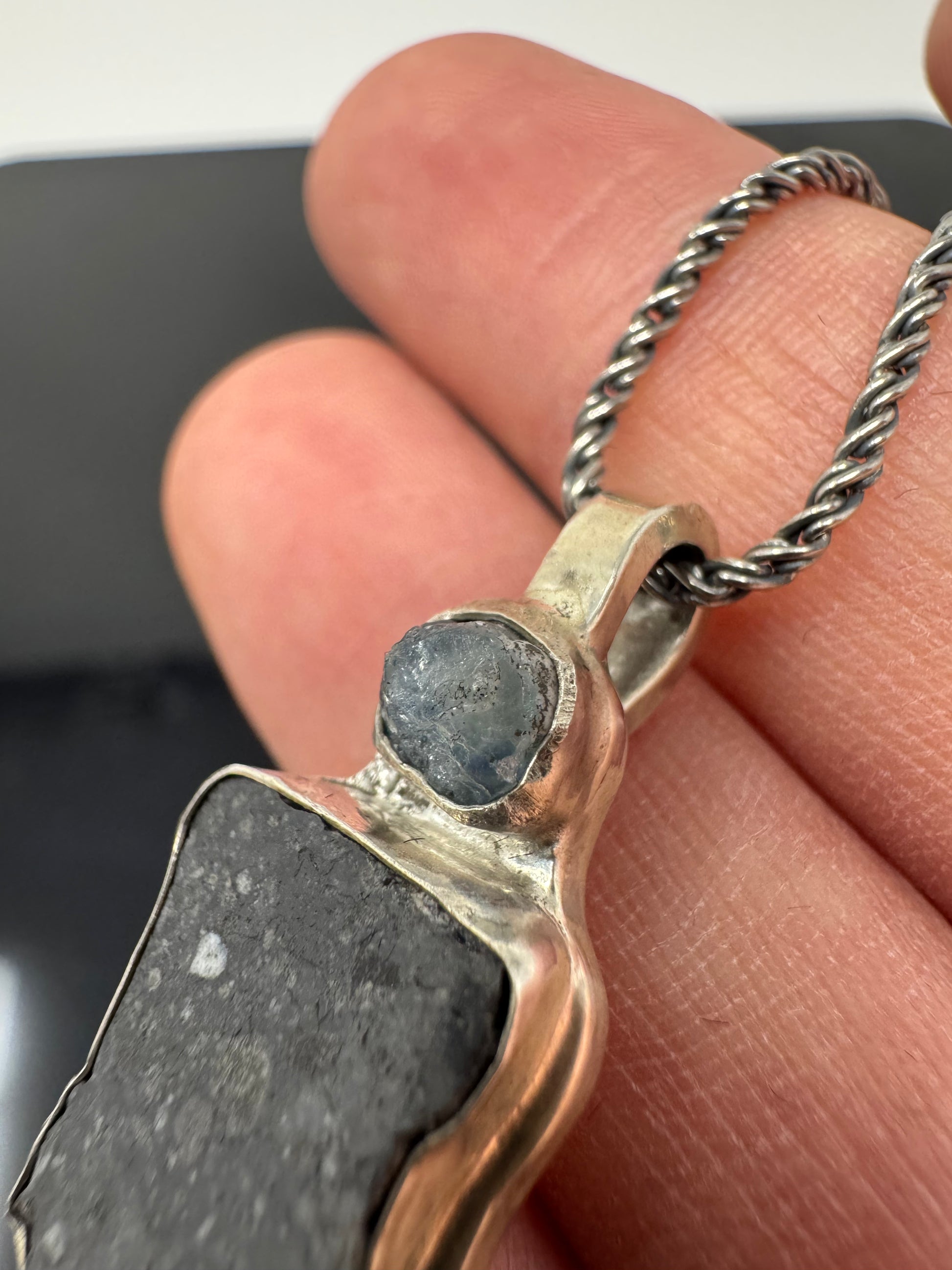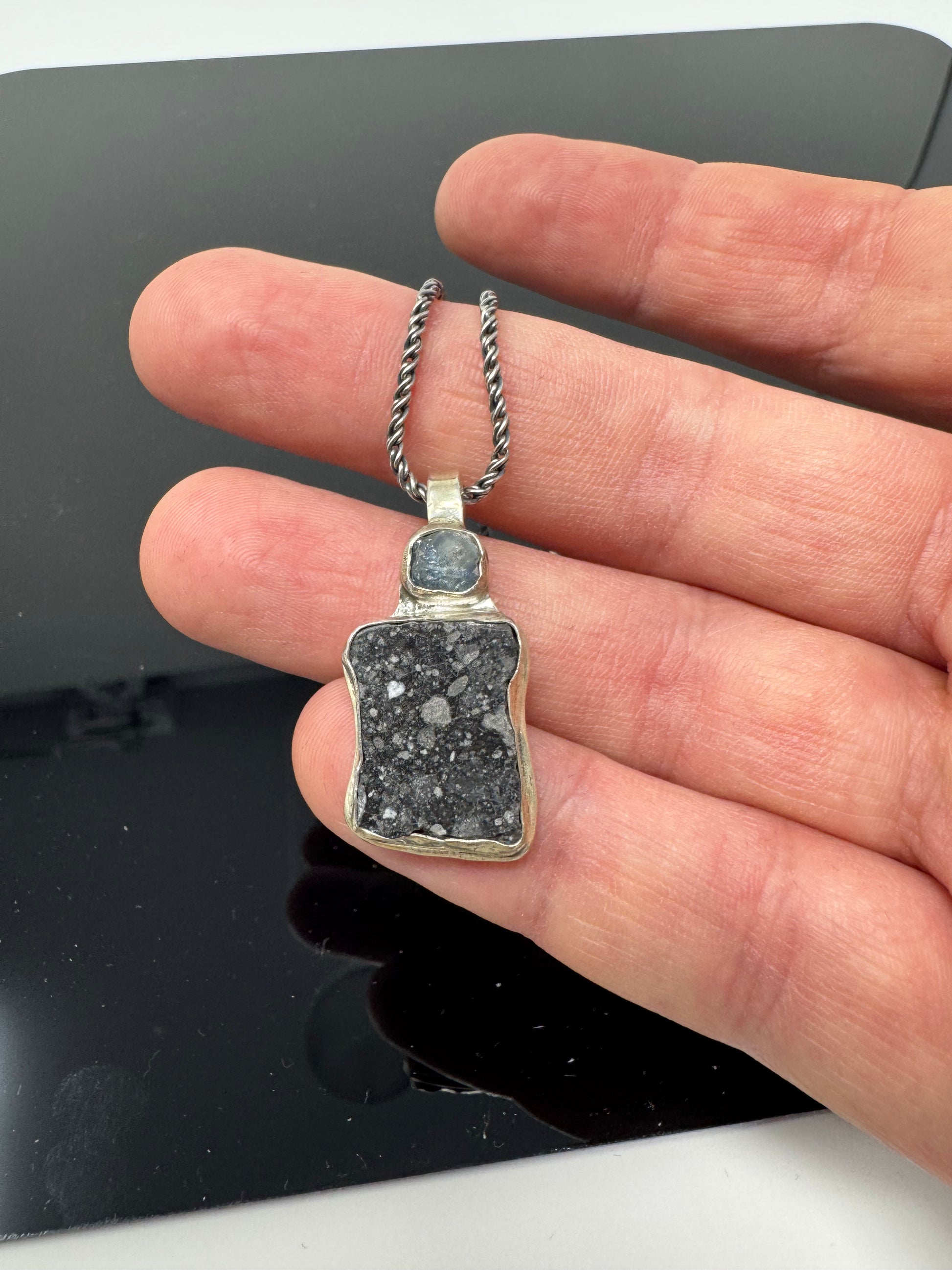 The Surface of the Moon Collection: Genuine NWA 17679 Lunar Meteorite Silver Necklace w/ Raw Montana Sapphire - Handmade - One of a Kind