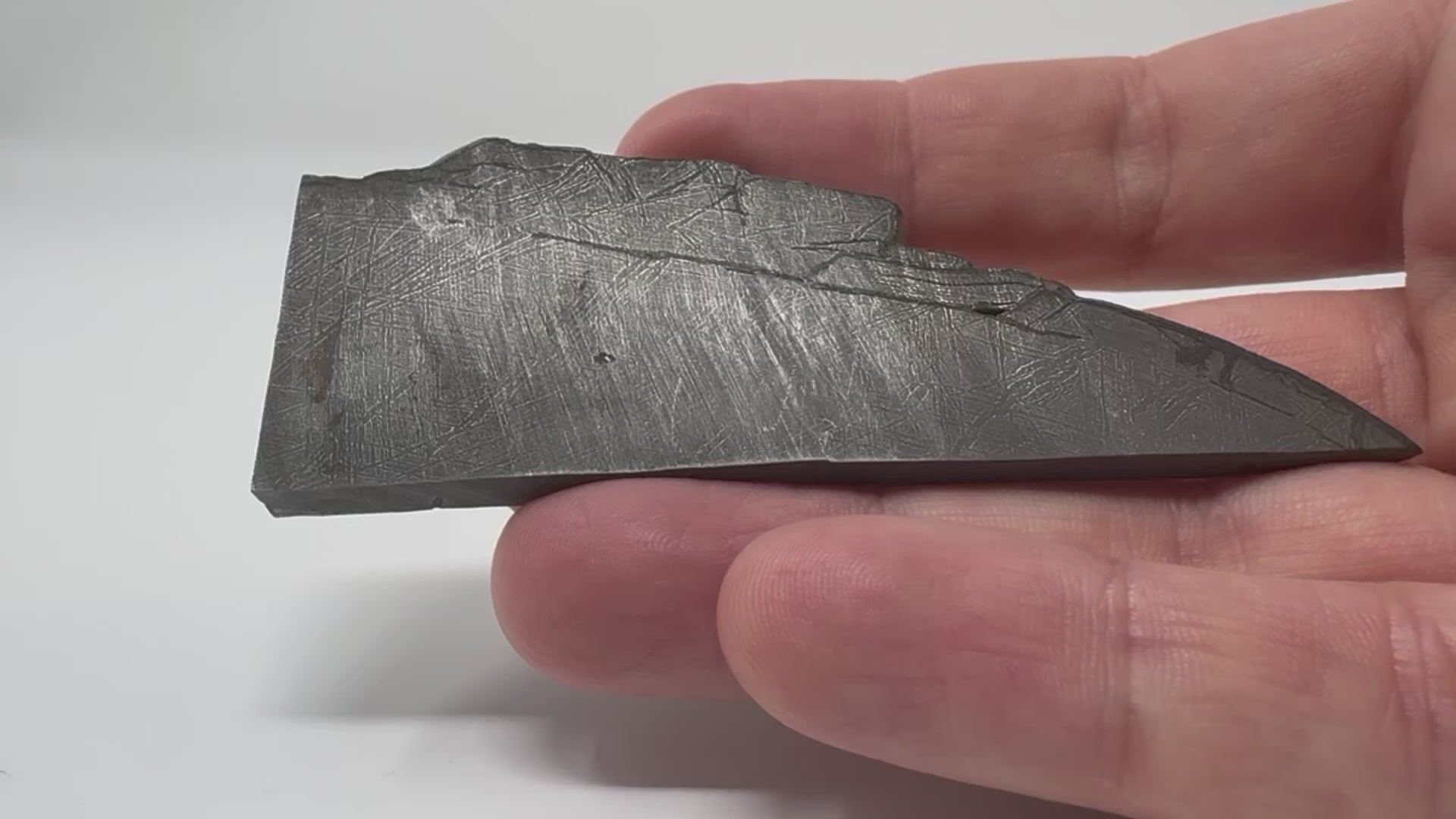 You are not only viewing a beautiful Gibeon meteorite that formed in outer space - you are also looking at a piece of ancient history that occurred here on Earth! The Gibeon meteorite was used and shaped into tools and weapons by indigenous tribes in Namibia for many years. This particular slice we are offering showcases clear evidence of compression and deformation of the pattern due to once being used as an anvil. It's an outstanding example of its kind, featuring a distinctive fine-grained crystal structure that gives it a robust and sturdy appearance. This is not one you will want to pass on - it's a true piece of history 360 degrees around.