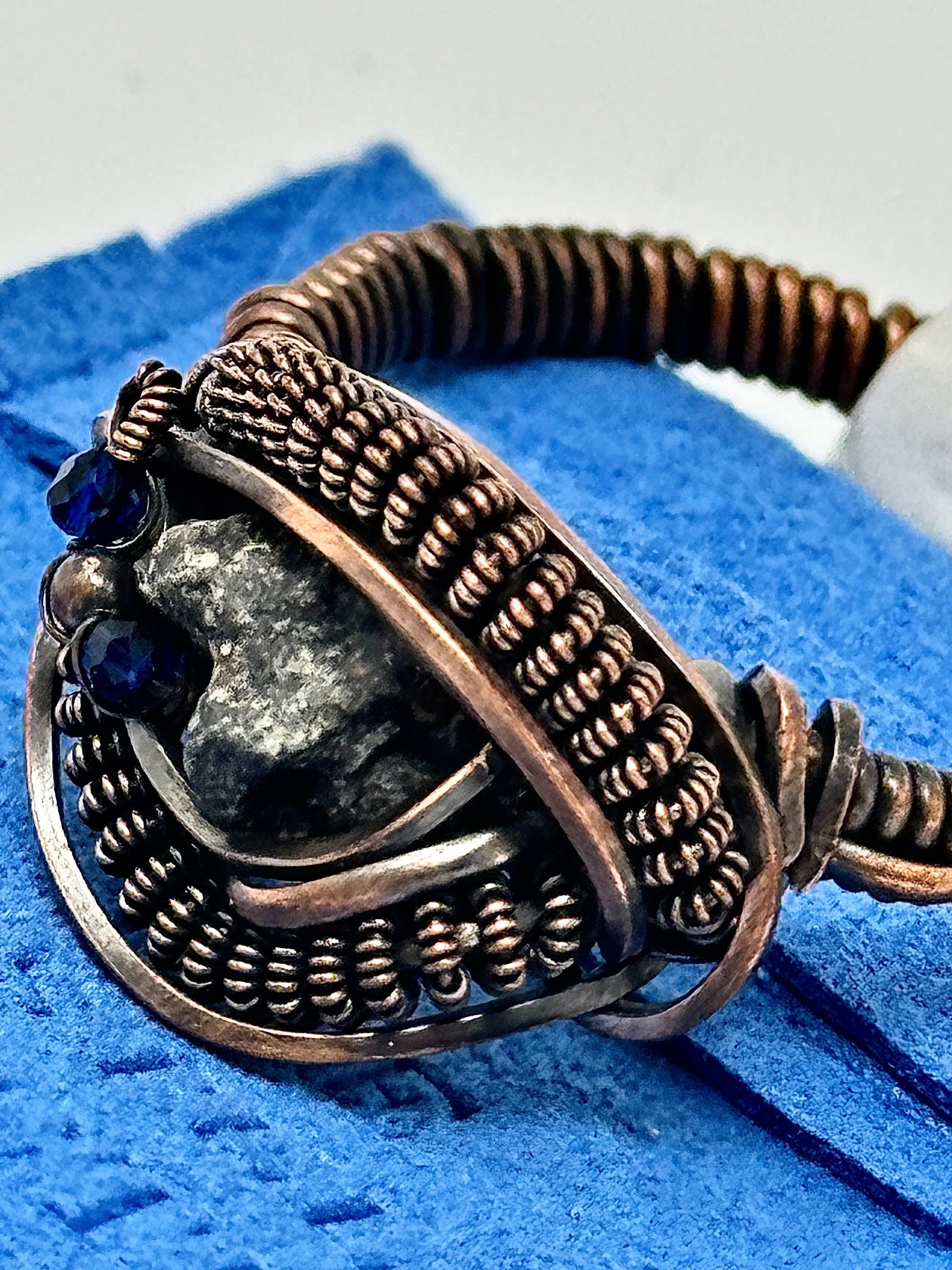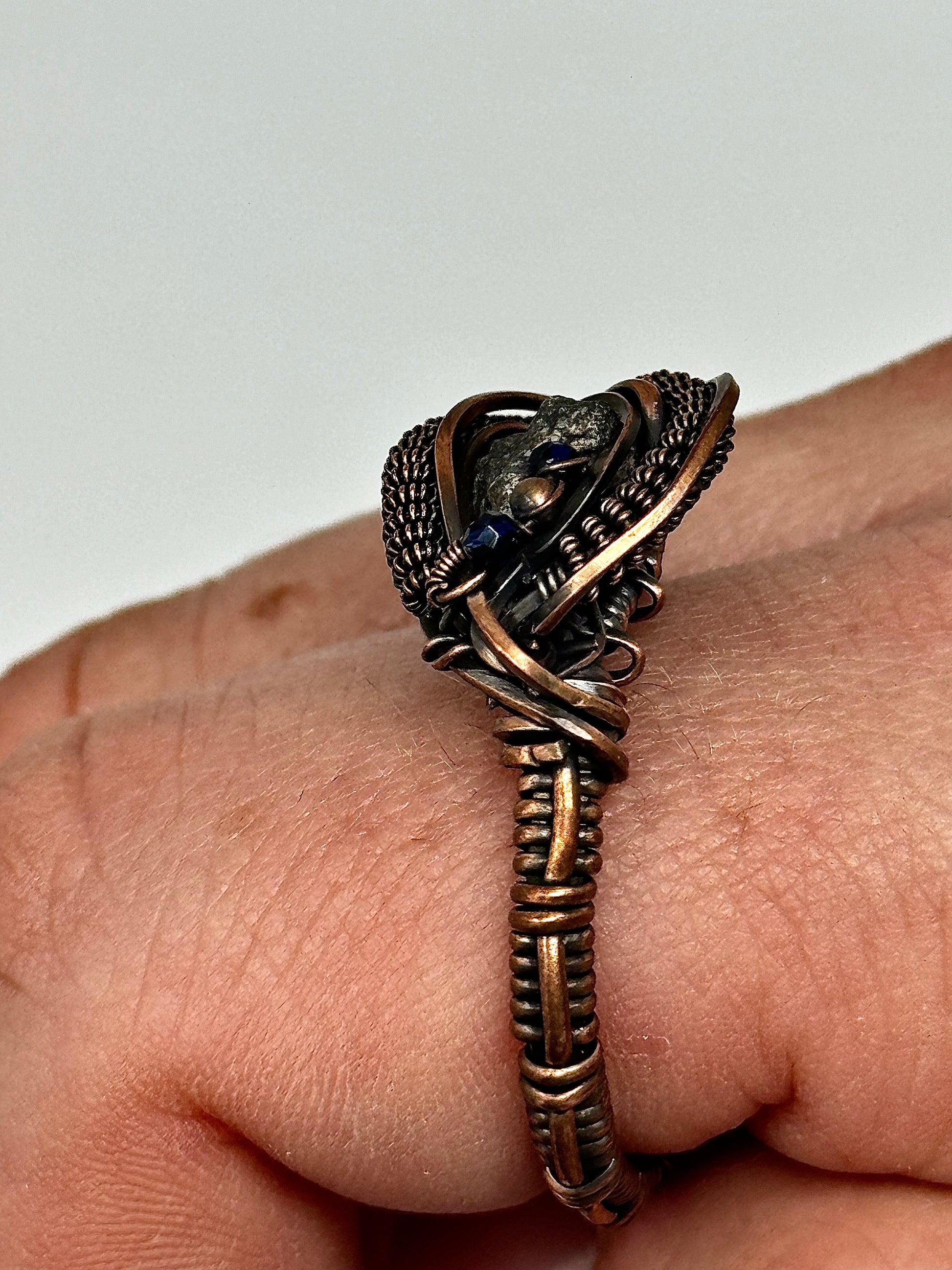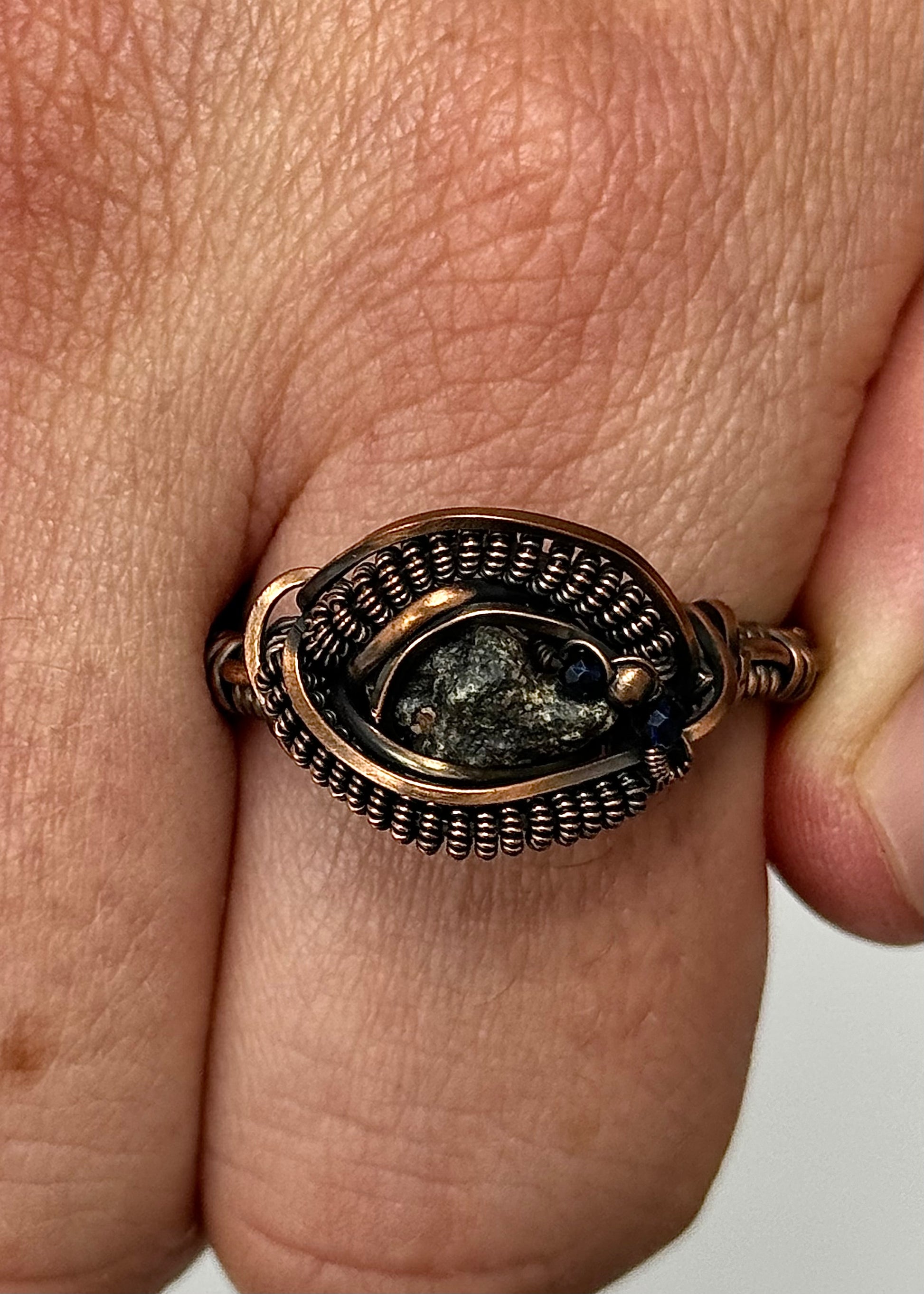 Handmade Ring - Genuine Lunar Meteorite, Sapphire + Copper - Size 13 - One of a Kind