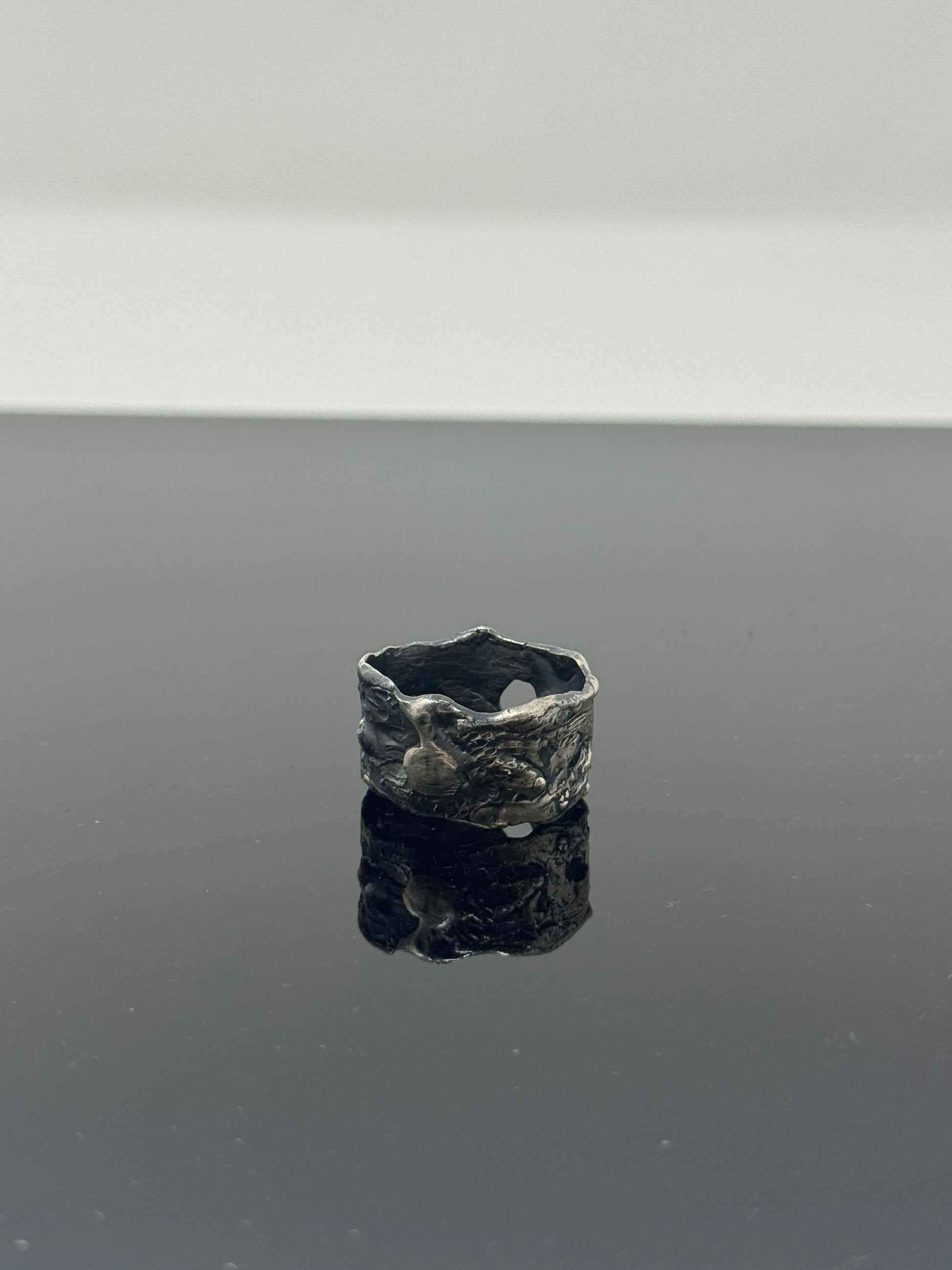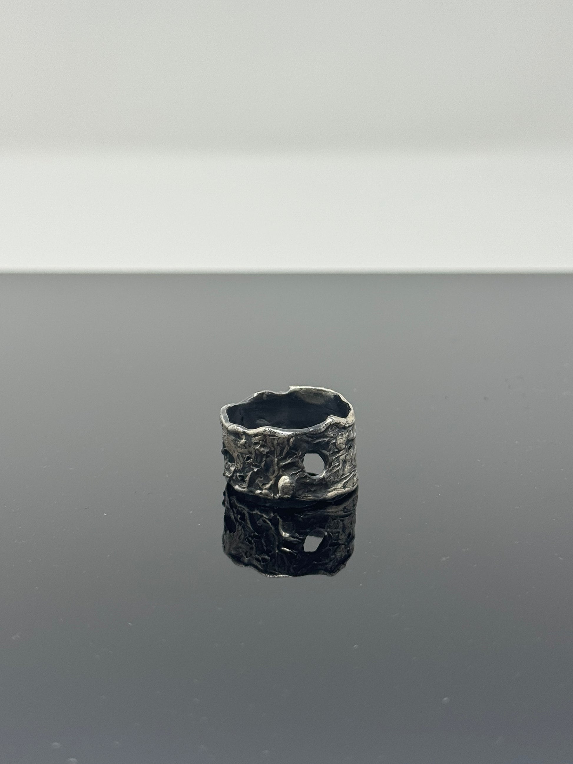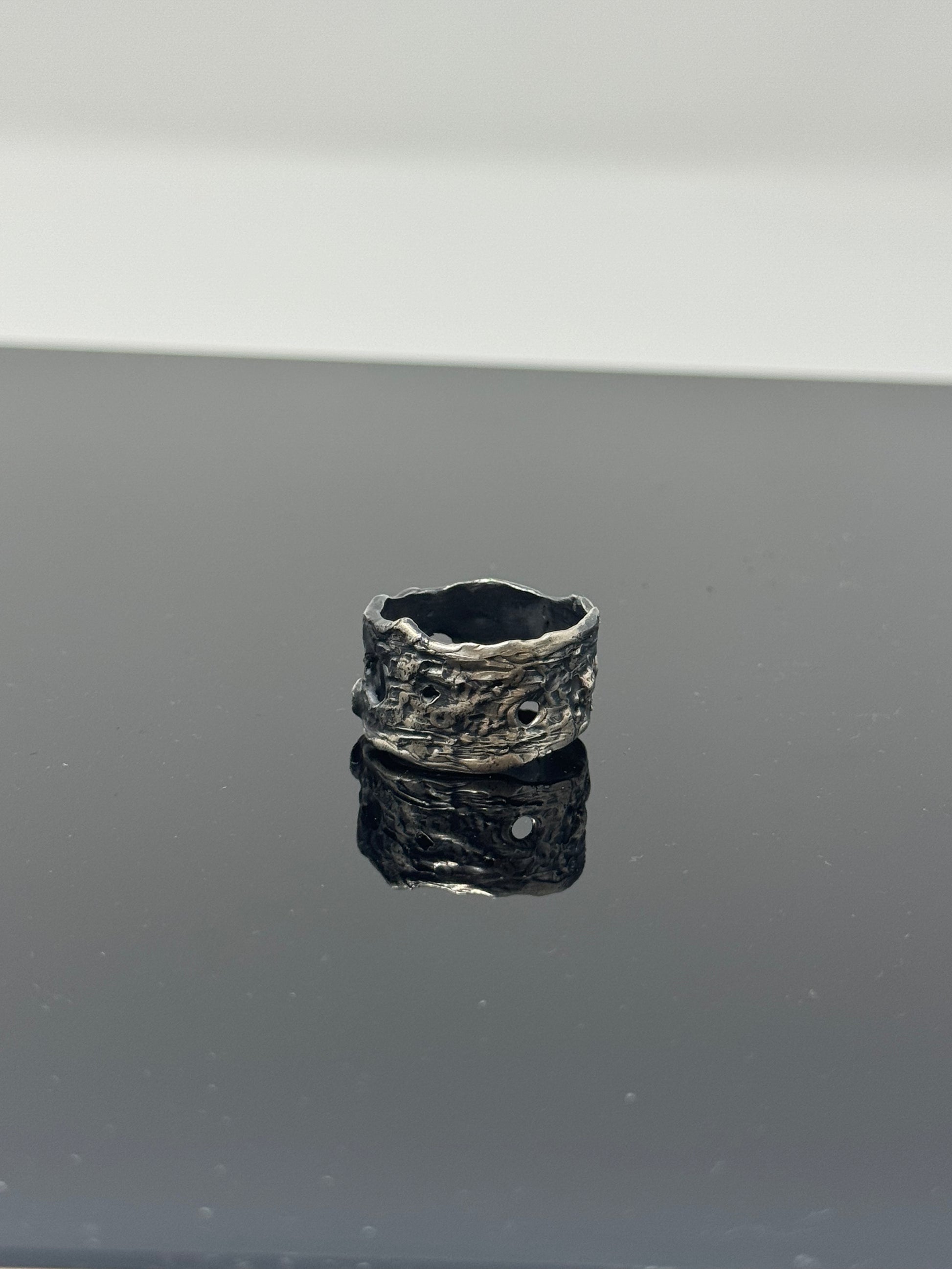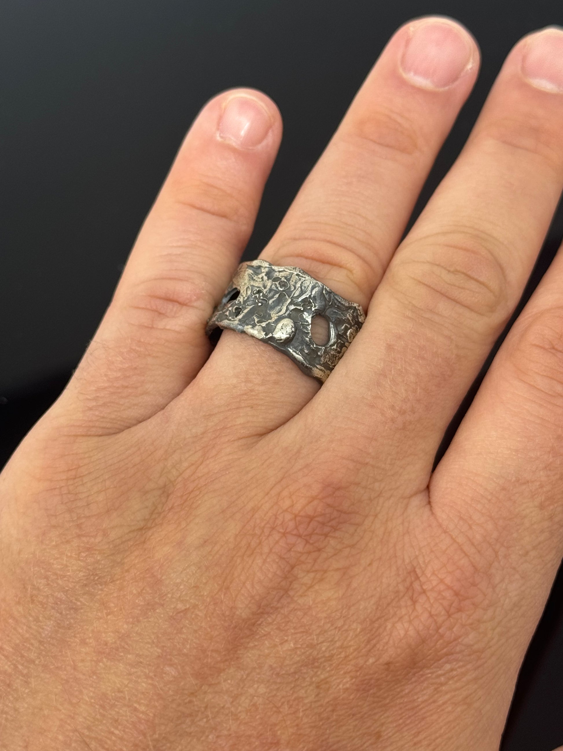 Note: This ring is handmade from silver, and is NOT made out of an iron meteorite. Lunar dust has been mixed in the liquid silver before being formed into the ring.
