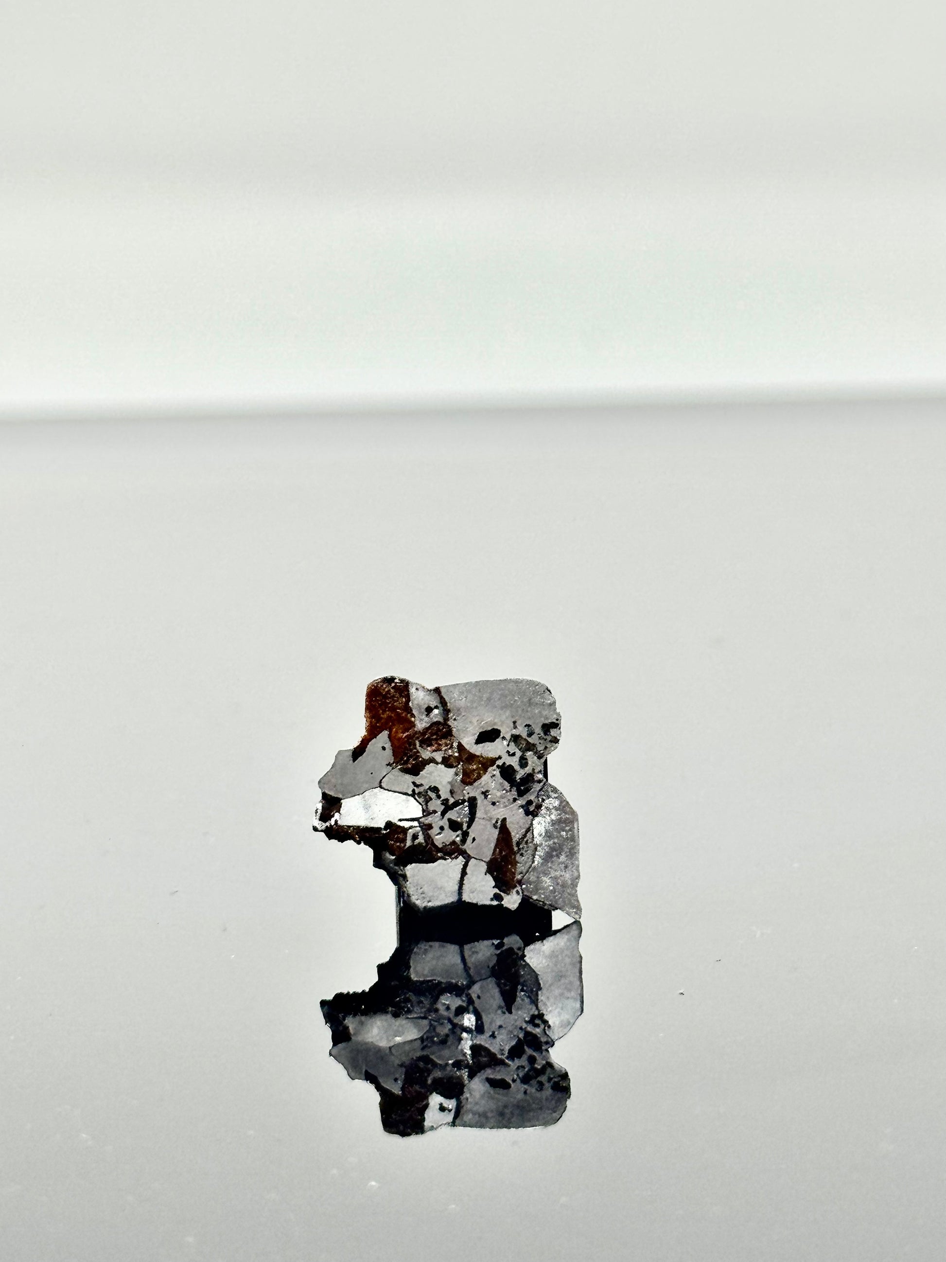 This 14.7g end cut is one you won’t want to miss having in your personal collection of highly desirable meteorites. It is professionally sliced, etched and polished! This chunk of an extremely rare pallasite will showcase all of the beautiful details, including blood-orange olivine crystals and a beautiful etch. Best part - its the end piece! End cuts of this meteorite are not easy to come by. You get to see both sides, interior and exterior of this mesmerizing pallasite.