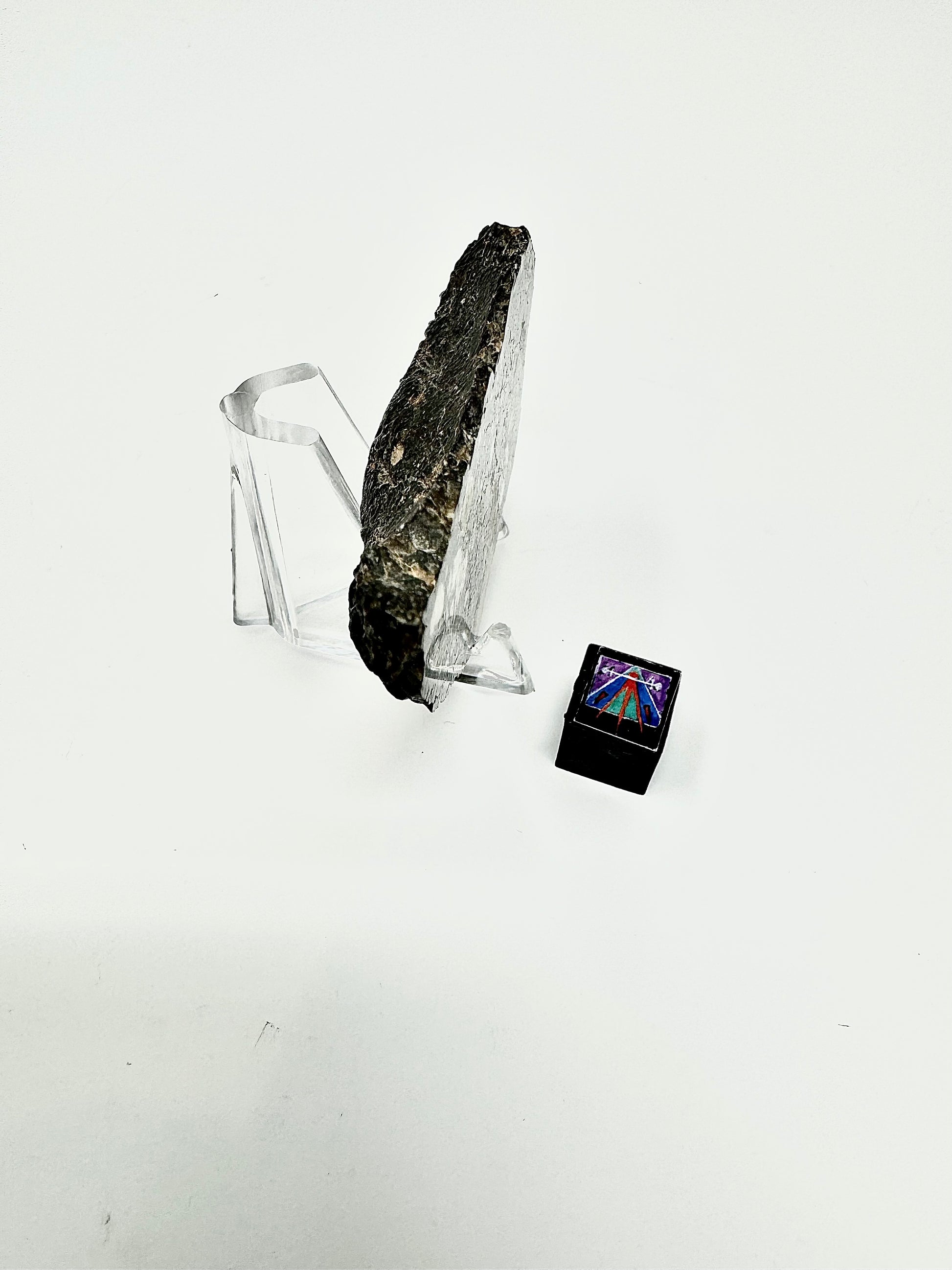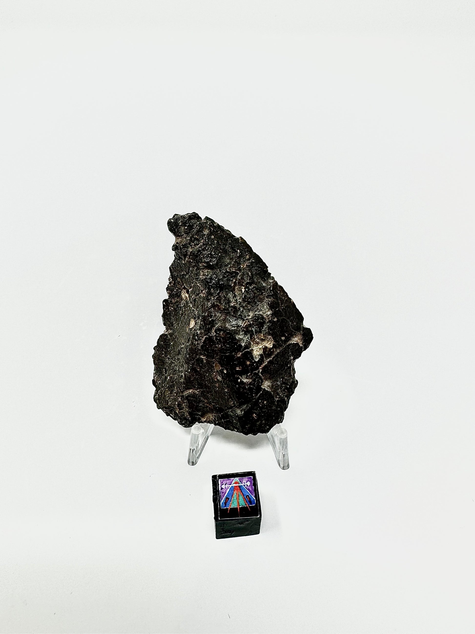 About Lunar Meteorites: Our moon lacks an atmosphere. When asteroids encounter these celestial bodies (which happens frequently), fragments eject from the impact and occasionally make their way into Earth’s orbit. If the stone survives its cataclysmic entry into Earth, it lands on the ground and becomes known as a meteorite. Once studied under a microscope by scientists, the stone's origin is then plotted based on its compositional property to the different classes of asteroids and samples returned to Earth. From there, meteorites make their way into museums, universities and to the general public.