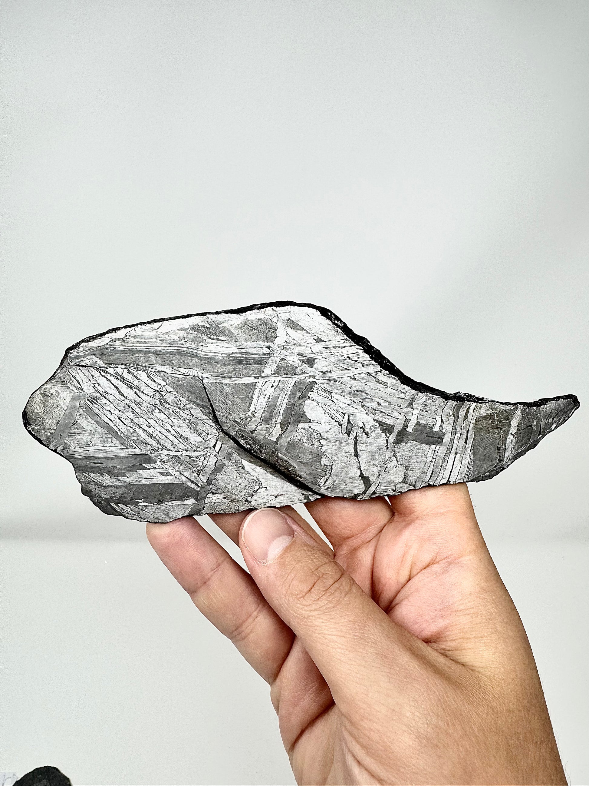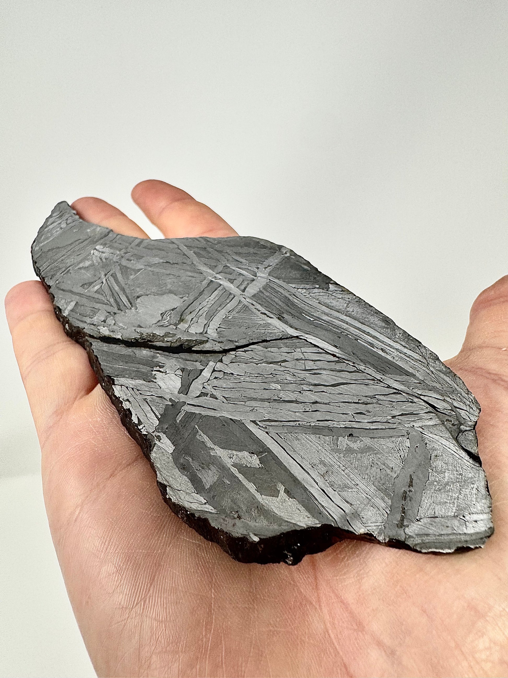 Seymchan meteorites are renowned for their striking crystalline patterns, showcasing one of the most beautiful designs found in any meteorite. This intricate pattern, known as the Widmanstätten pattern, is created by the intermingling of two iron-nickel minerals, kamacite and taenite. As molten metal within the asteroid’s core cooled, it crystallized into taenite. As the temperature continued to decrease, tiny kamacite crystals gradually formed within the taenite, resulting in these stunning natural designs.