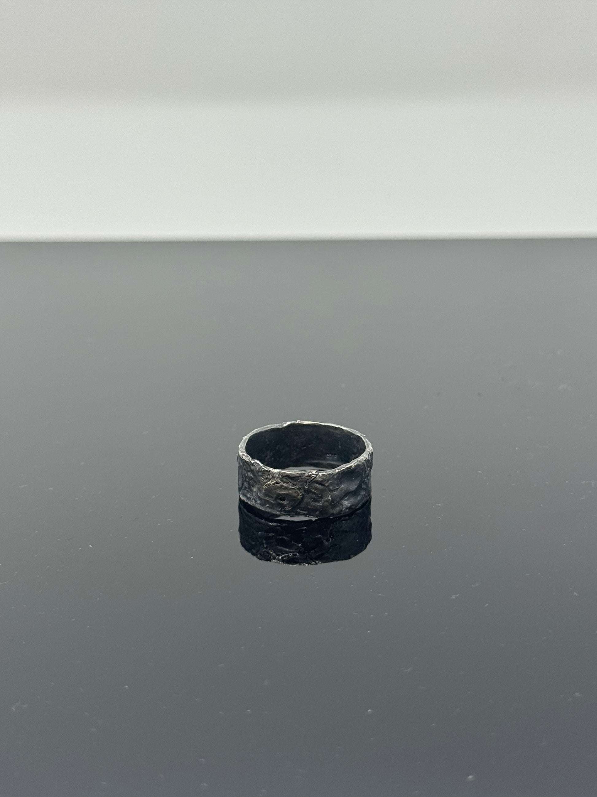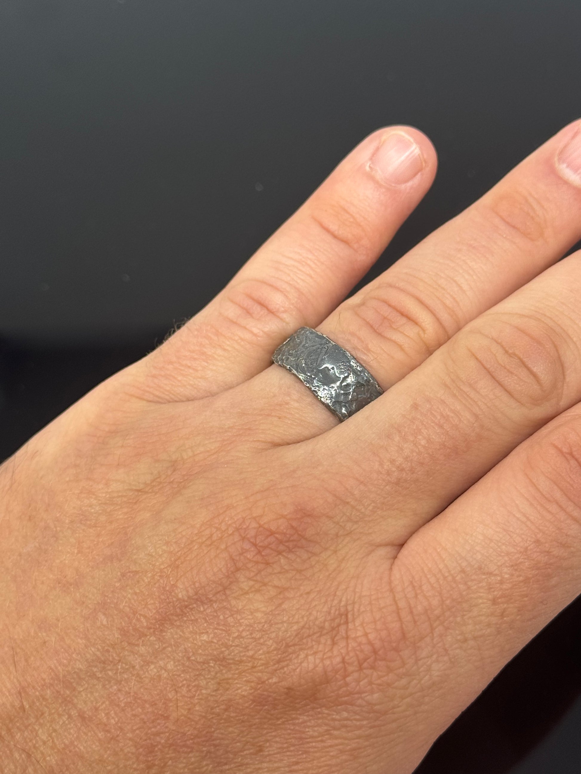 Note: This ring is handmade from silver, and is NOT made out of an iron meteorite. Lunar dust has been mixed in the liquid silver before being formed into the ring.
